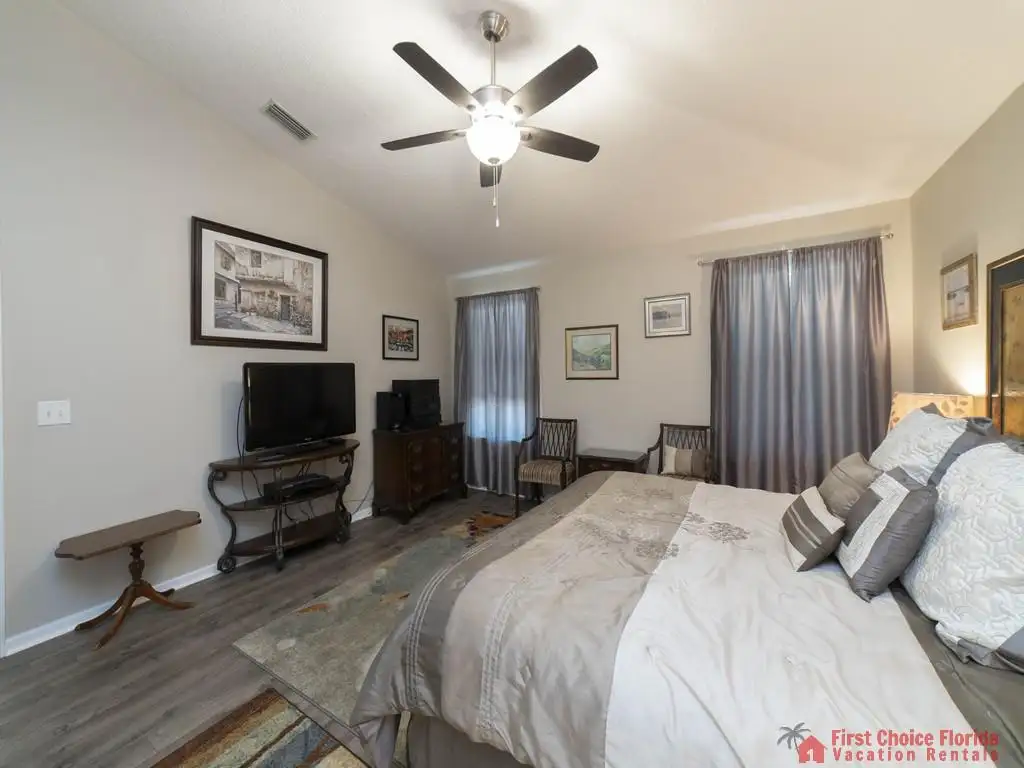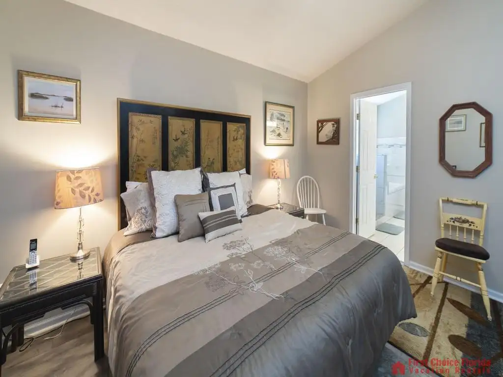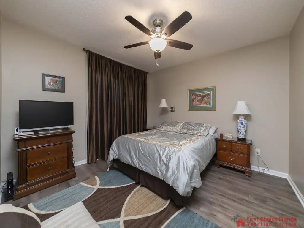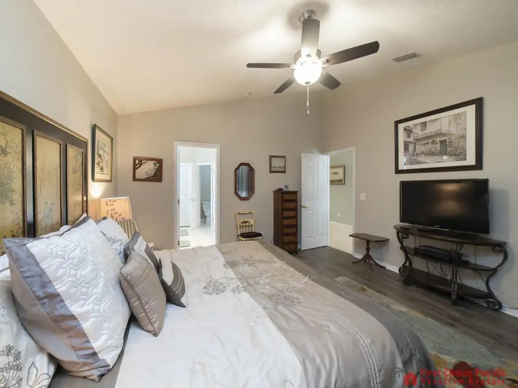 The primary bedroom includes a king Sleep Number bed and a private ensuite bathroom. The second bedroom is furnished with a queen bed, while the third bedroom features a king bed. All bedrooms and the living room are equipped with televisions offering a wide range of cable channels. High-speed WiFi is available throughout the home, supporting streaming, remote work, or school needs.