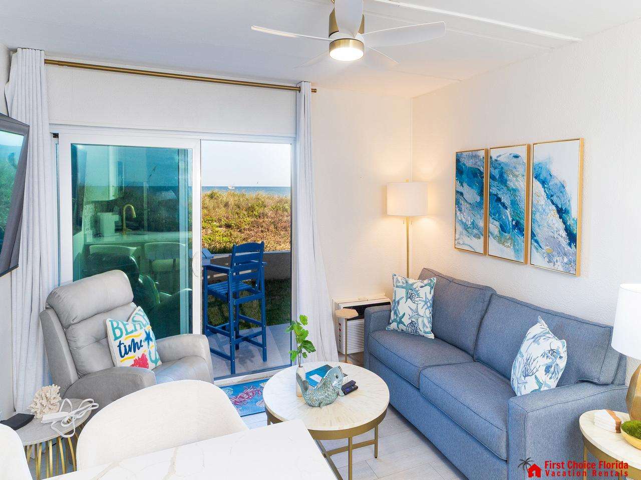 Enjoy breathtaking views while swimming in the largest oceanfront heated pool on Crescent Beach. This one-bedroom condo provides fantastic views from the living room, kitchen, and extra-large balcony. Picture yourself sipping coffee at sunrise, watching dolphins and pelicans diving for fish—this is why you come to the beach!