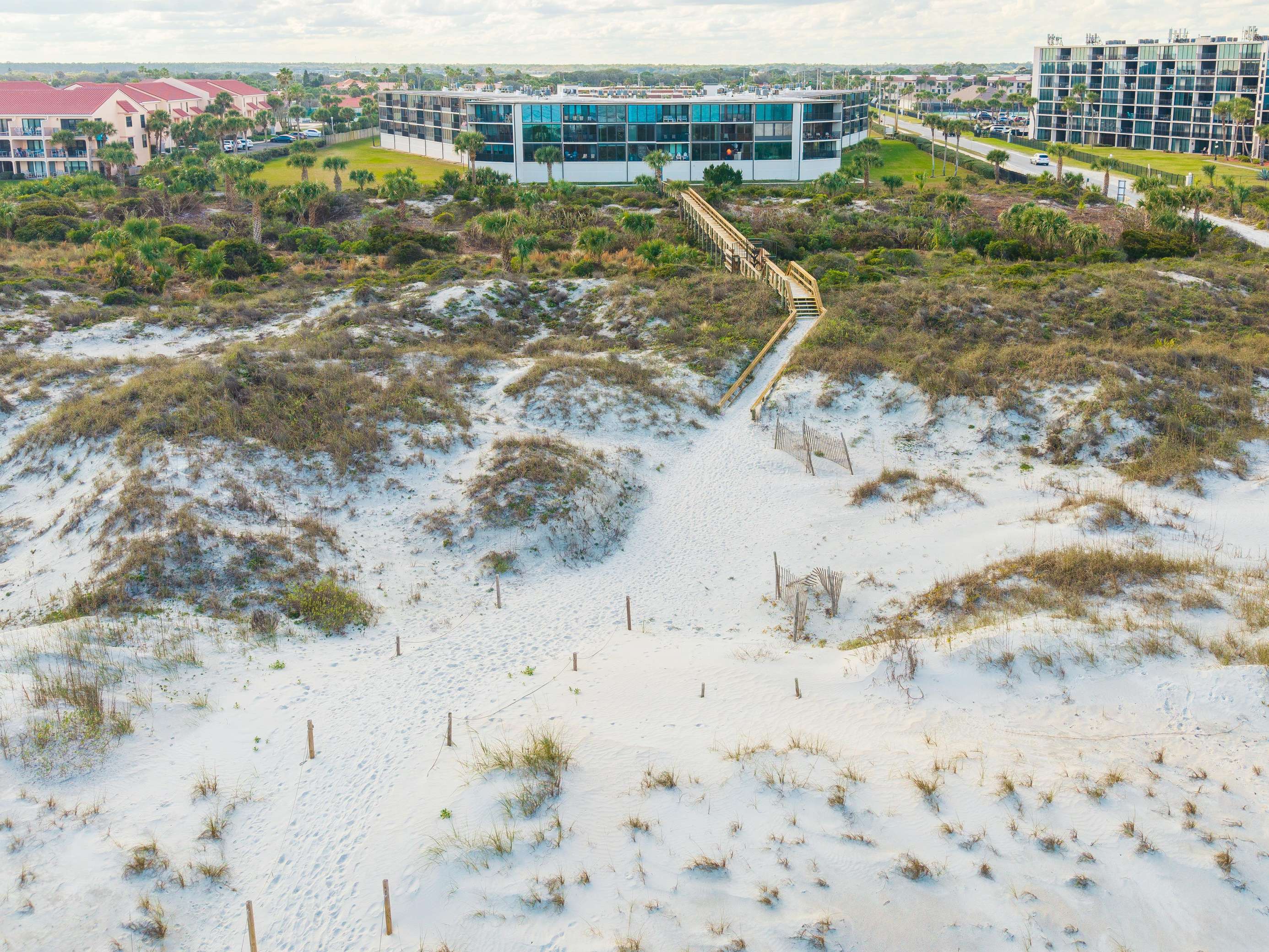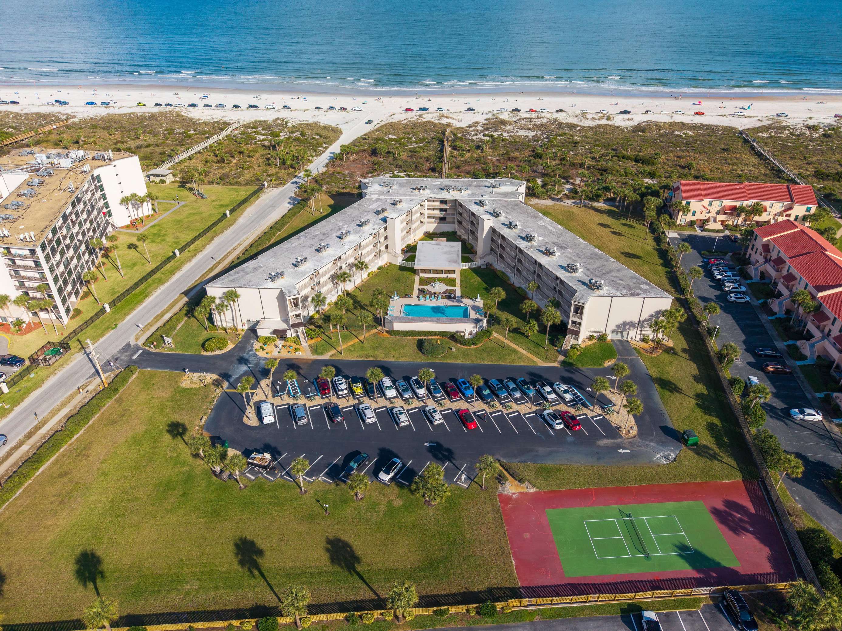 The 3-level building features a private boardwalk to the beach, a covered grilling area, a poolside cabana, and elevators. It is just a few minutes from historic downtown St. Augustine, which offers plenty of dining, shopping, and tourist attractions.