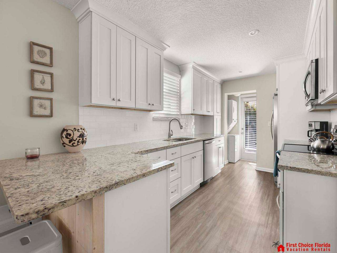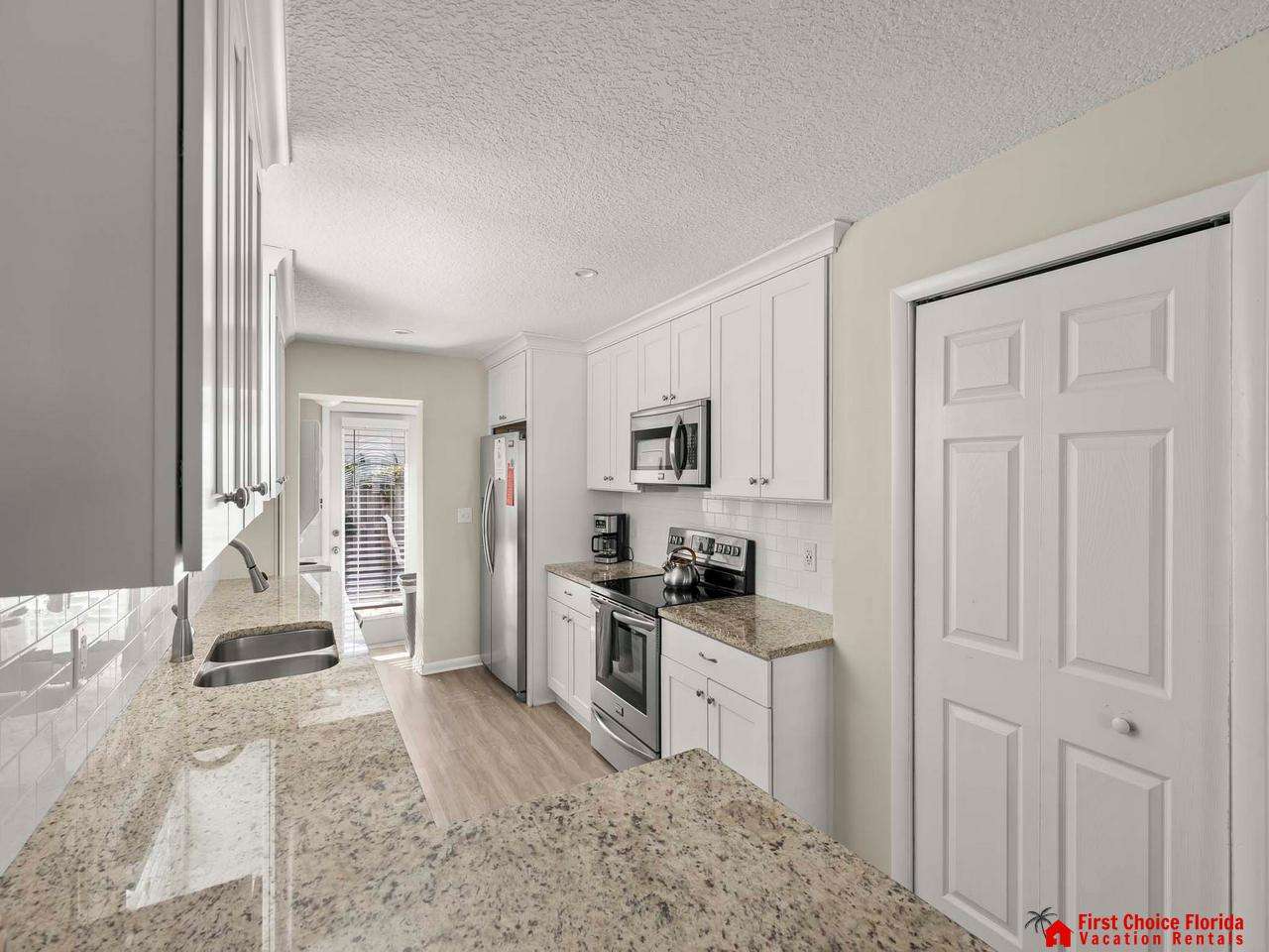 Beautiful 2/2 ground floor end unit – covered patio. Completely remodeled w/granite counters and top of the line appliances. Located in the heart of St. Augustine Beach just a few homes off the beach. Fenced in courtyard / Pet Friendly. Wireless Internet!