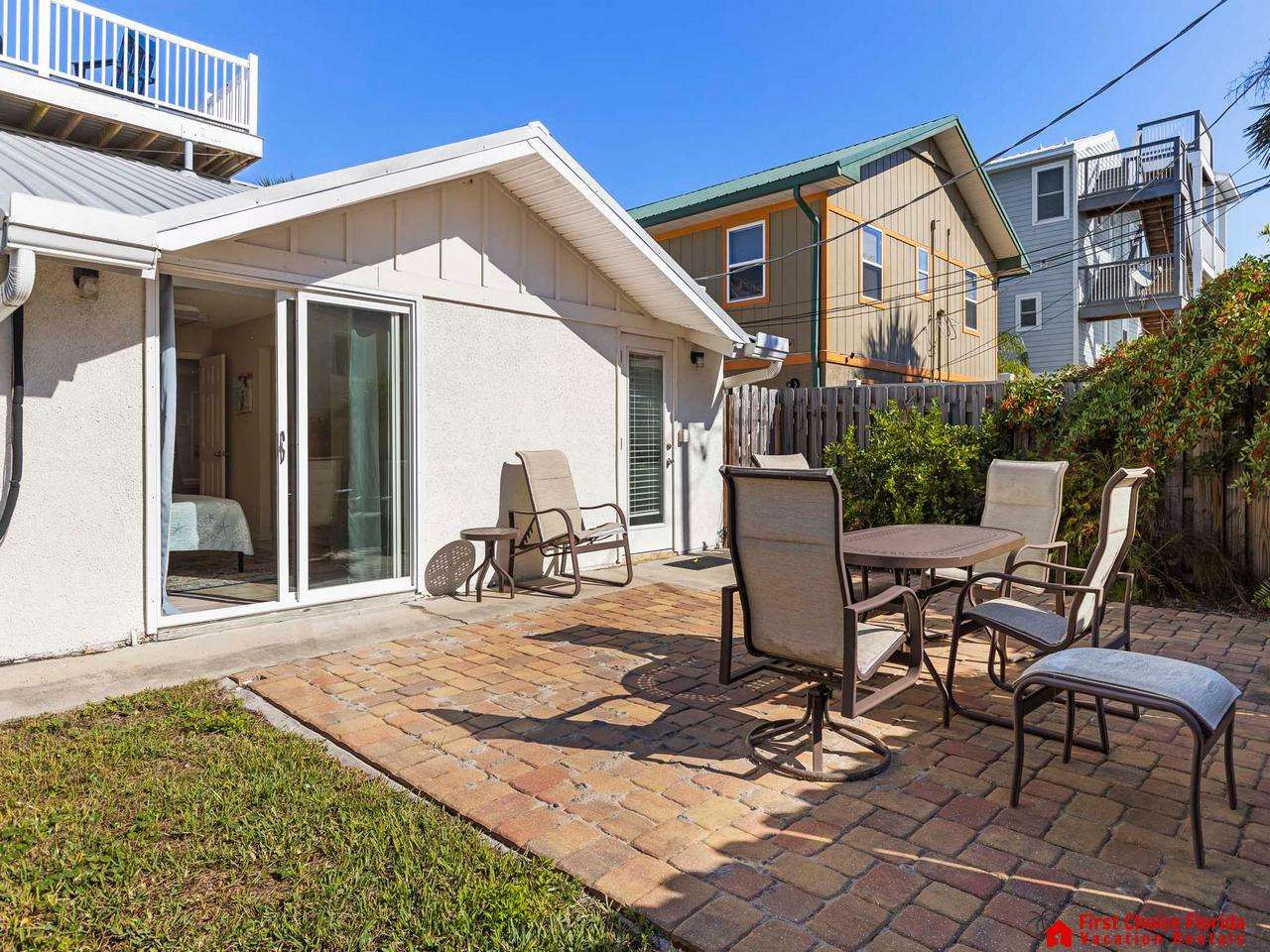 Beautiful 2/2 ground floor unit with courtyard. Completely remodeled w/granite counters and top of the line appliances. Located in the heart of St. Augustine Beach just a few homes off the beach. Fenced in courtyard / Pet Friendly. Wireless Internet!