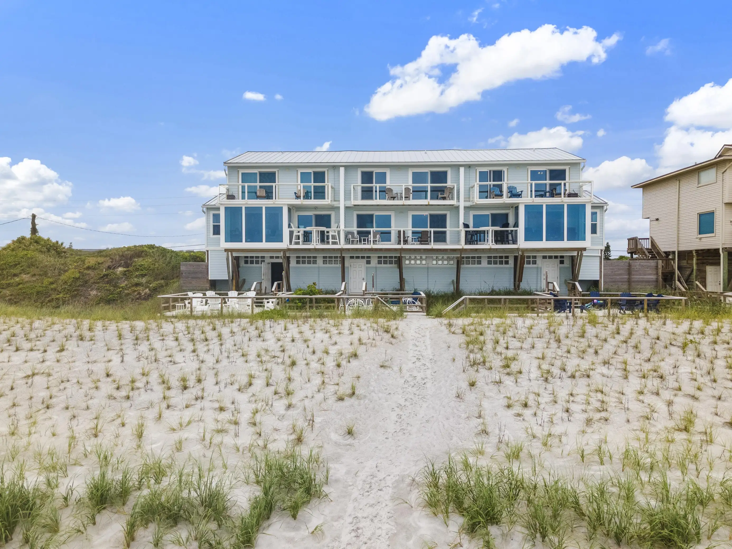 Escape to a serene and breathtaking coastal experience in this luxurious three-bedroom oceanfront townhome during your next getaway to Vilano Beach, St. Augustine, FL!