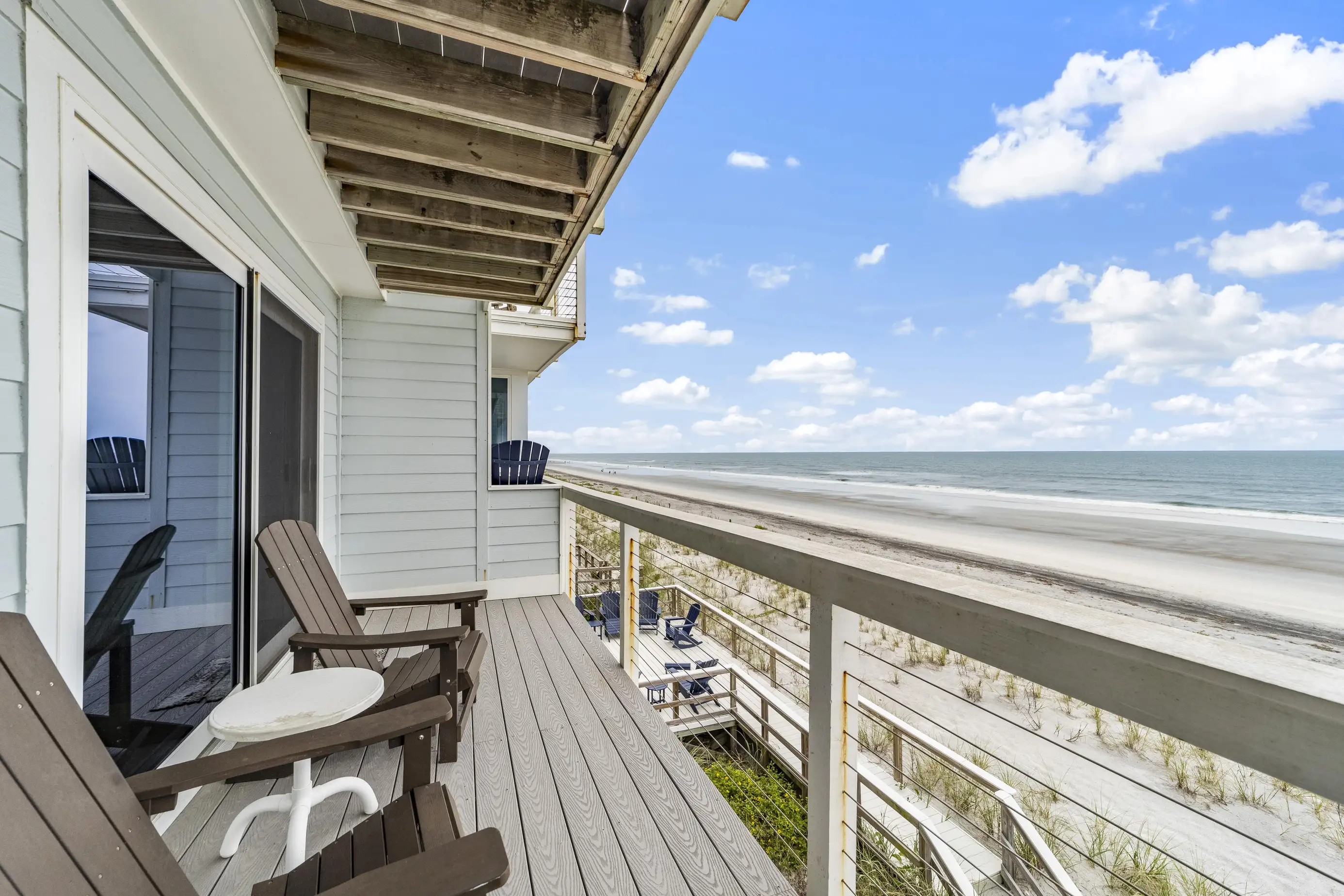Ocean Oasis is an oceanfront townhome with stunning views! This rare 3-bedroom, 2 full bath, and 1 half bath townhome features comfortable king and queen beds. The beach is just a few steps from your back door!