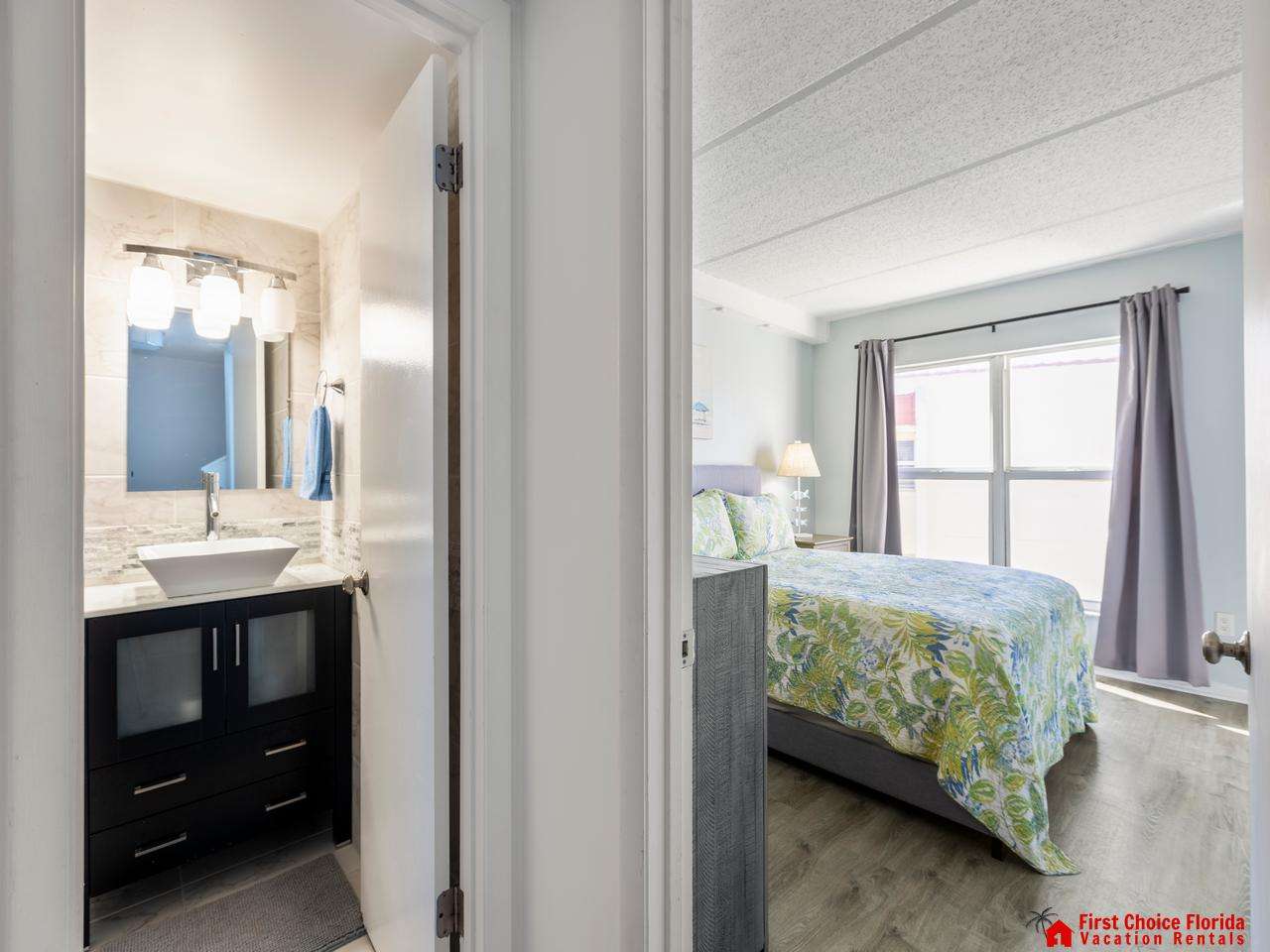 The second bedroom has a queen bed with a separate guest bathroom with a tub/shower combo.