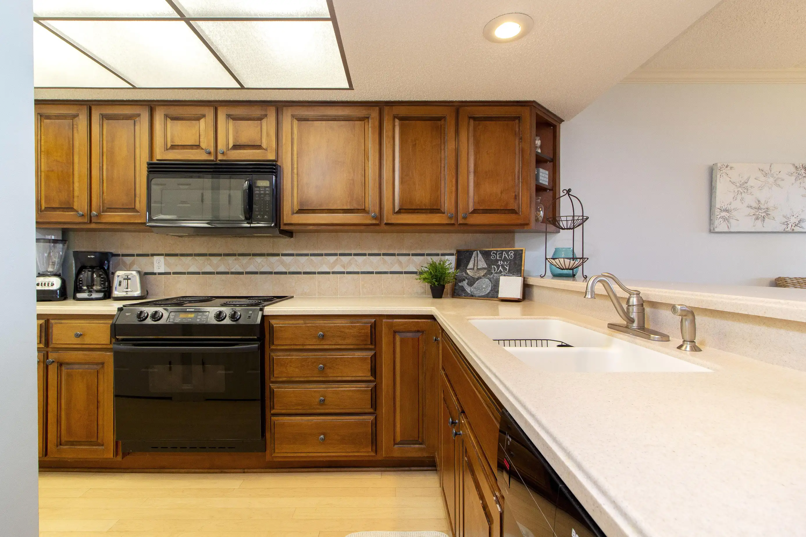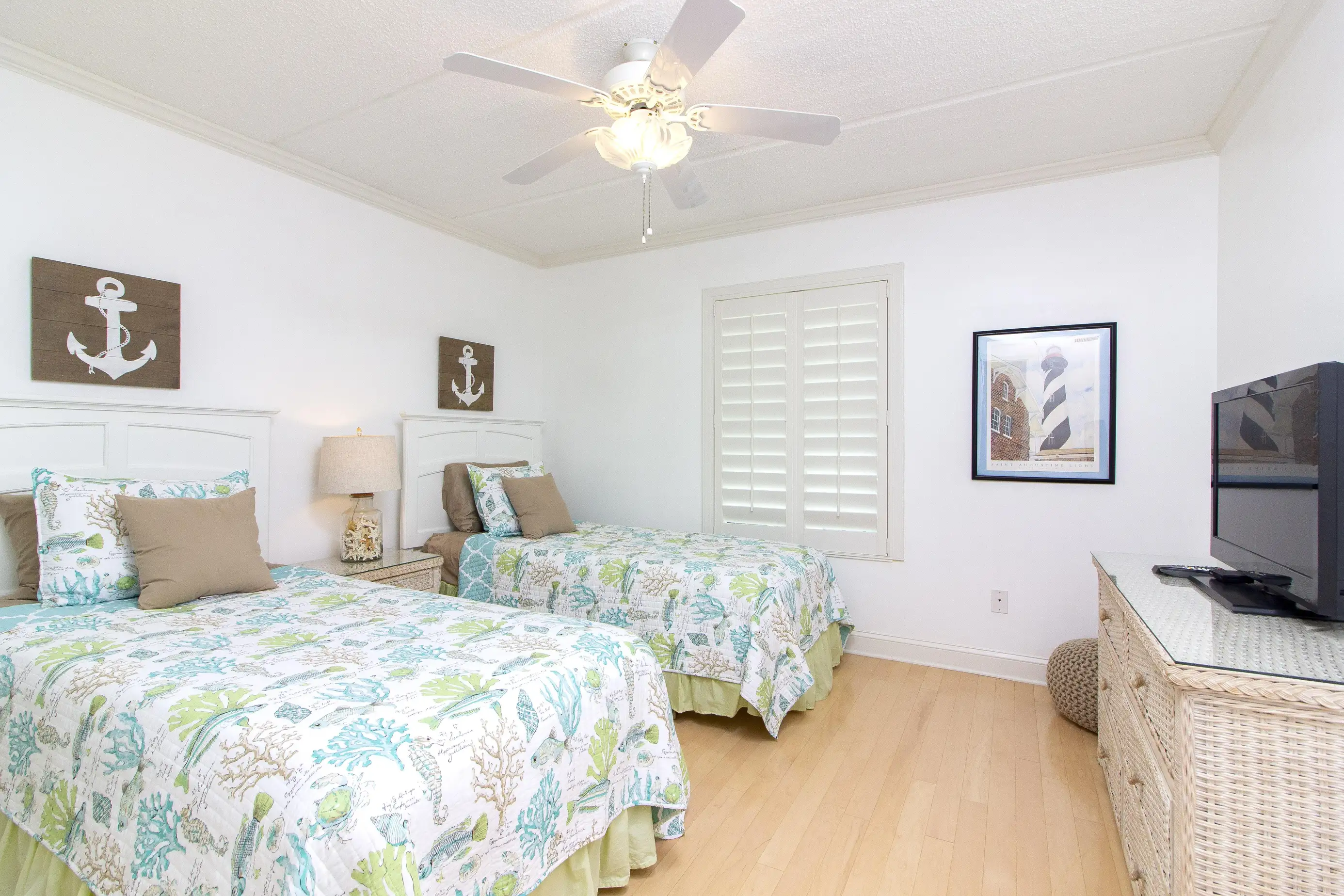 With a few short steps, you can feel the soft sand between your toes and the gentle waves lapping at your feet, as the condo offers an unobstructed view of the ocean. Spend your days hunting for seashells or shark teeth, tossing a ball or frisbee, dropping in a fishing line, or simply relaxing and soaking up the sun. If you need a break from the sand, take a refreshing dip in the pool or enjoy a game of tennis.
